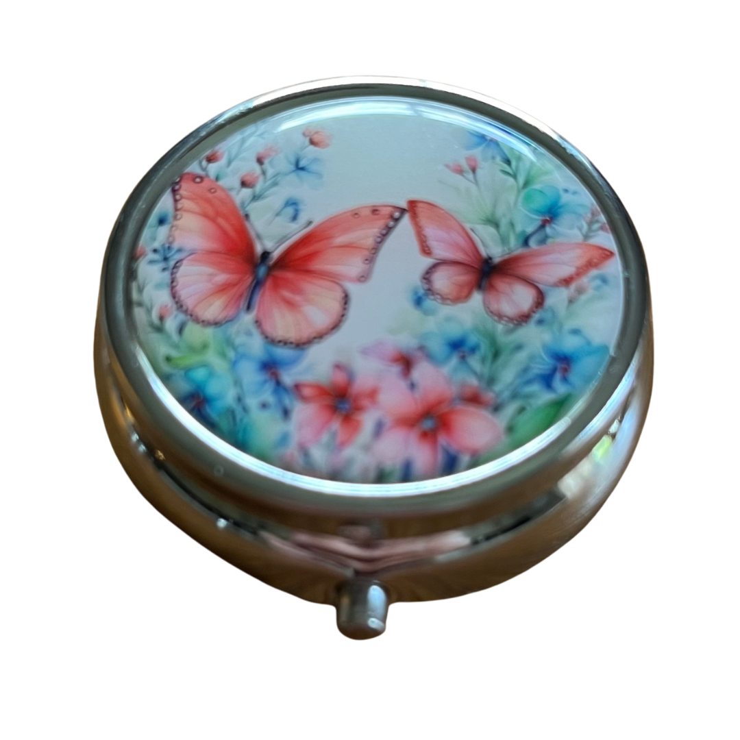 Rund förvaringsask i nickelfri metall med tre fack, perfekt för dina kosttillskott/örter när du är på resande fot, får lätt plats i en ficka.