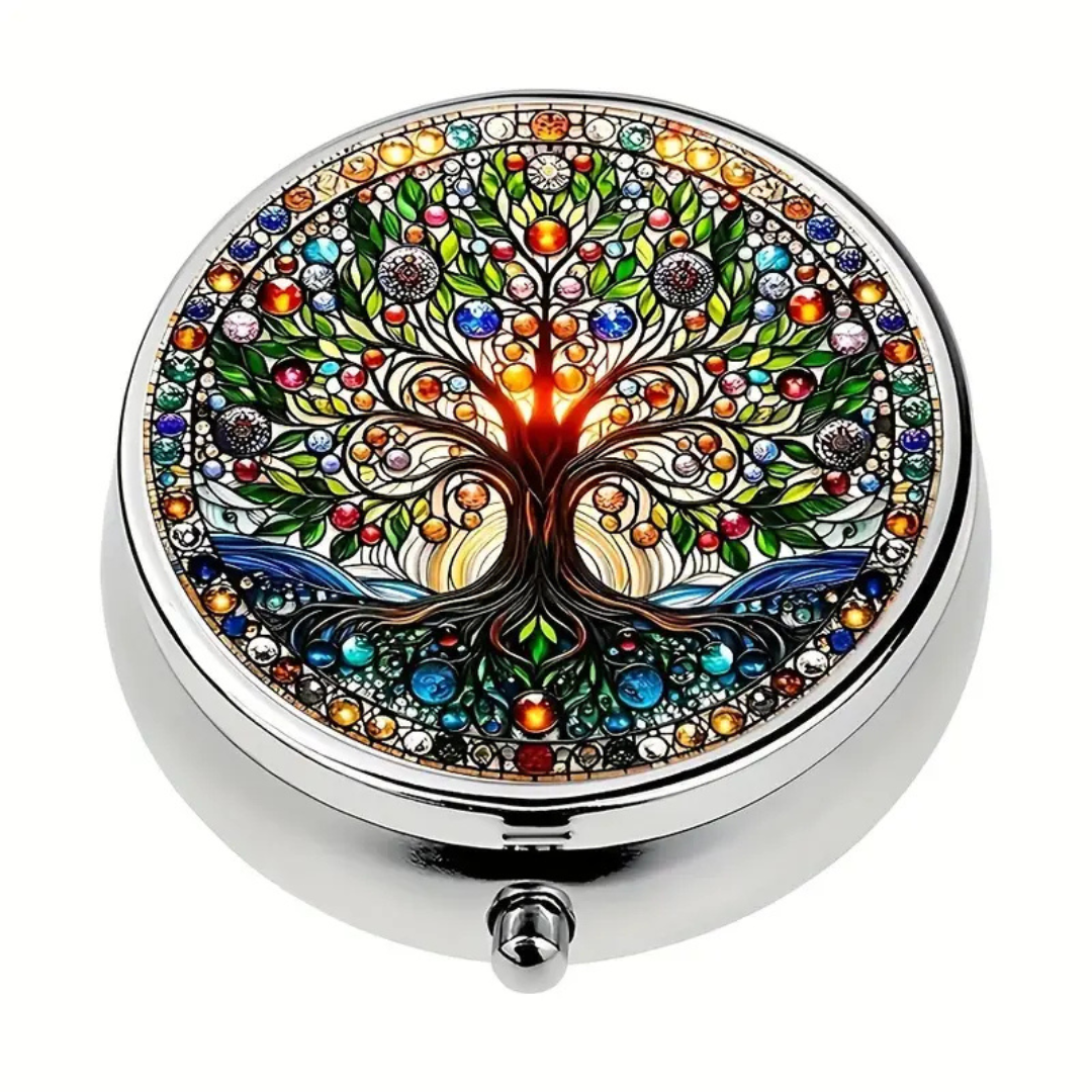 Rund förvaringsask i nickelfri metall med tre fack, perfekt för dina kosttillskott/örter när du är på resande fot, får lätt plats i en ficka.