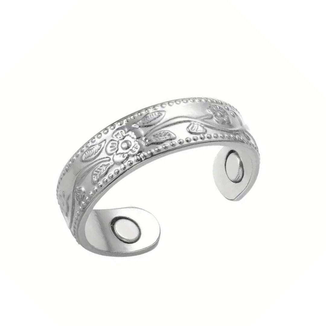 Ringen har en innerdiameter på 19 mm, är 6 mm bred och är i silverfärg. Den innehåller 2 magneter. Ringen kan justeras så att den passar de allra flesta, detta eftersom koppar är ett mjukt material.