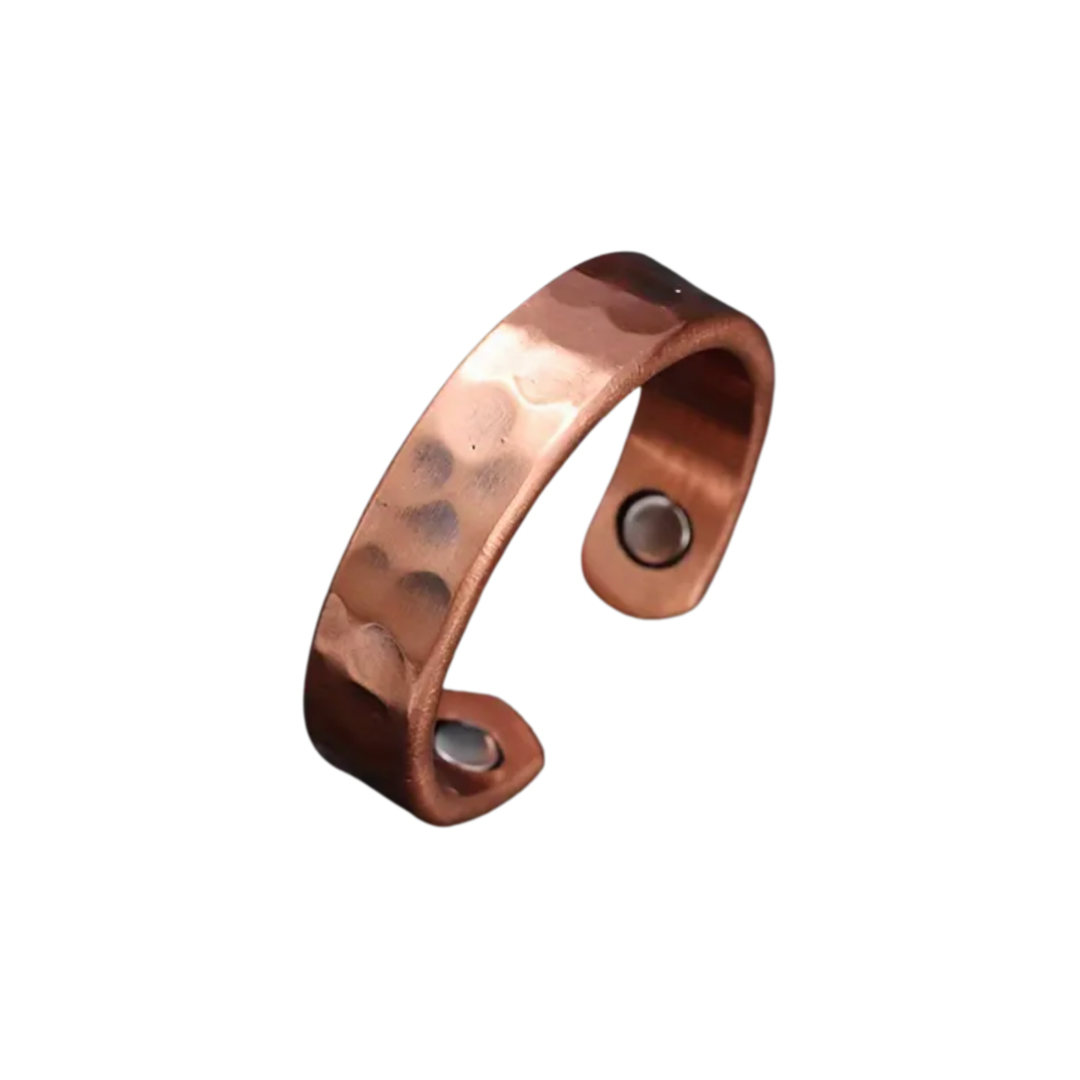 En magnetisk ringgjord av koppar har både de gynnsamma effekterna av magneter och koppar. Koppar är ett viktigt grundämne som används av röda blodkroppar för att transportera syre. Koppar är också viktigt för produktionen av kollagen, vilket är en stor betydelse för våra ben, brosk, hud, hår och för att upprätthålla kroppens immunförsvar. Personer som lider av artrit säger att koppar kan minska smärta och inflammation eftersom spår av mineralet tränger in och lindrar.